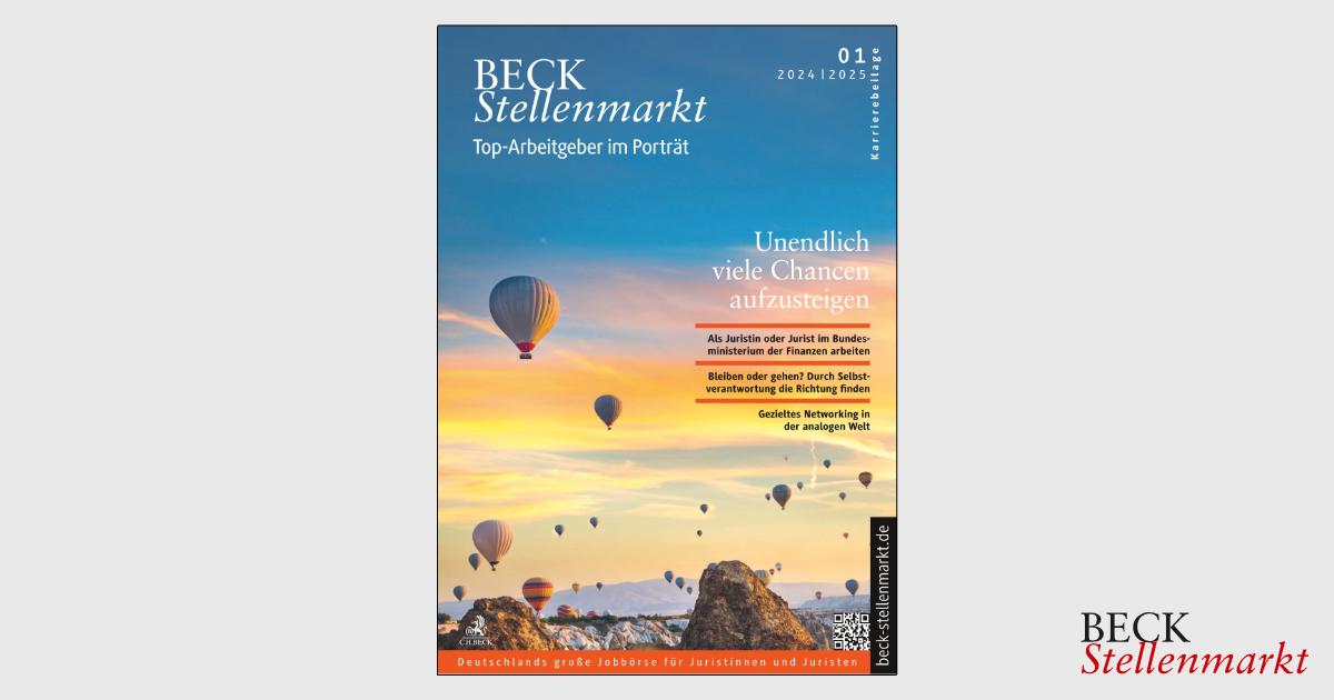 Auf beck-stellenmarkt.de finden Sie außerdem aktuelle Stellenangebote, noch mehr ausführliche Online-Profile von attraktiven Arbeitgebern, mit Podcasts und Videoimpressionen vom künftigen Arbeitsplatz und den Kolleginnen und Kollegen und viele weitere spannende Beiträge und Einblicke rund um den juristischen Berufsalltag.